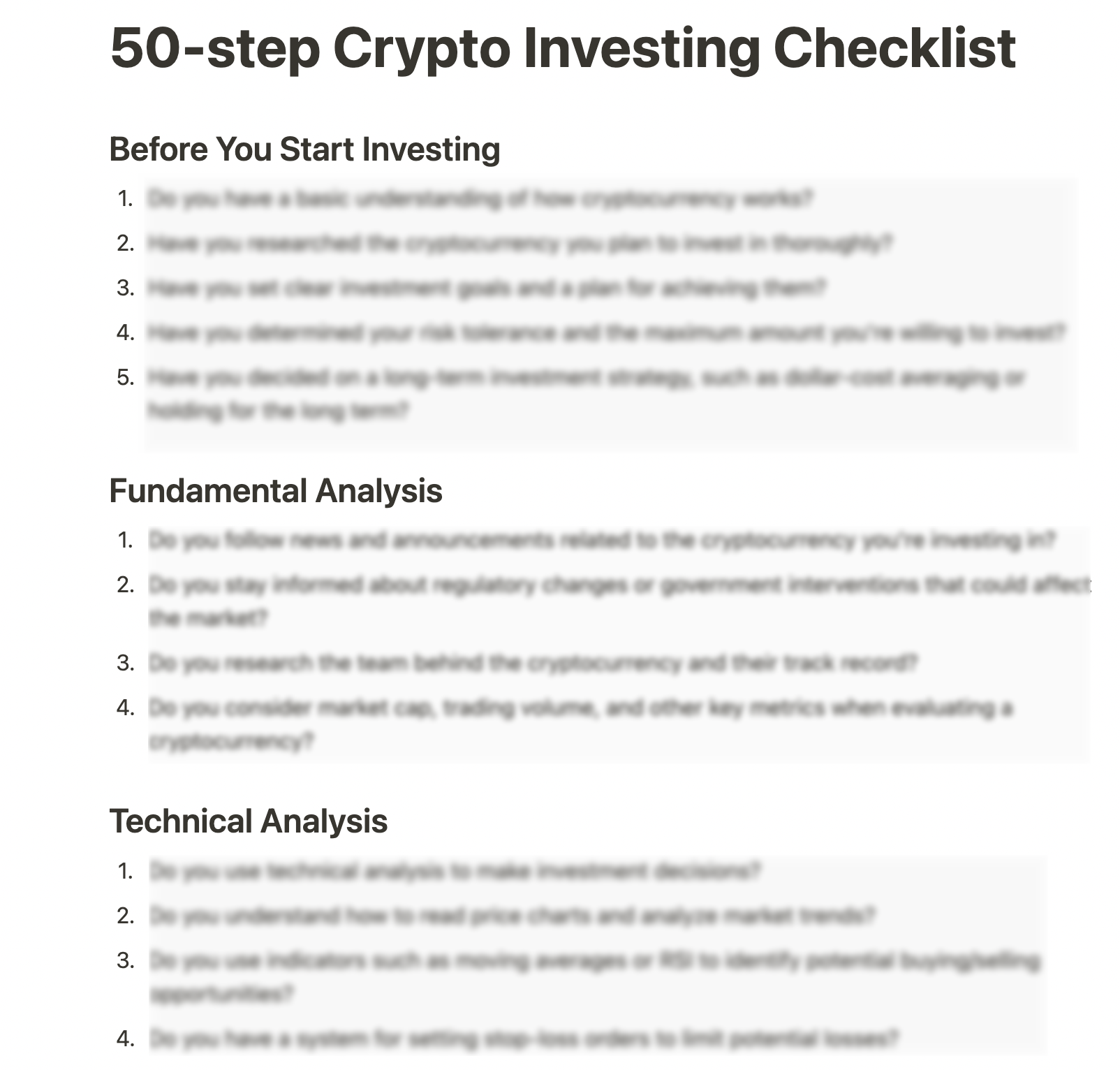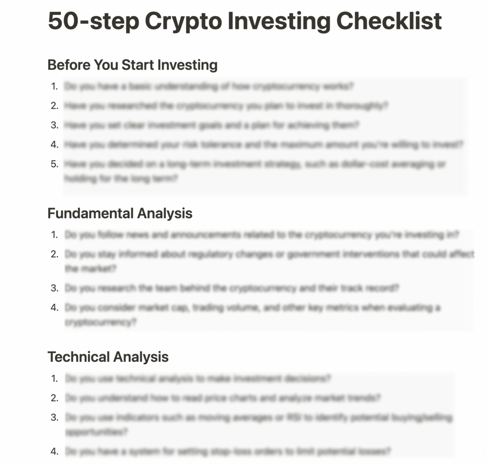 This checklist is carefully designed to give you all the steps you need for successful crypto investing